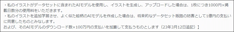 やすゆき氏はいわゆる無断学習罪で戦っているが、無断学習罪が存在すると思っているのは反AIだけで、実際にはそのような罪は存在しない。