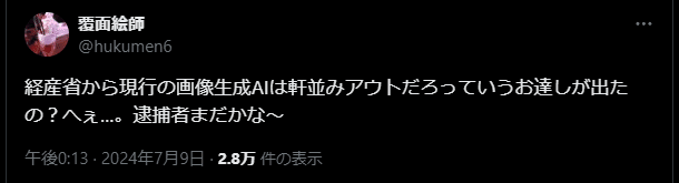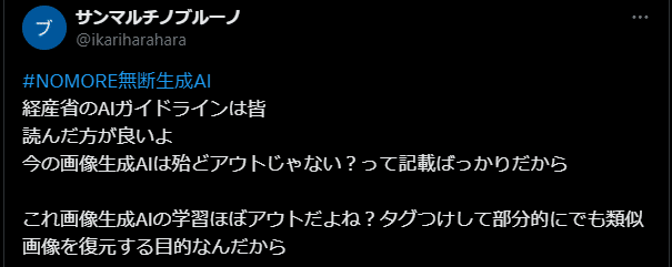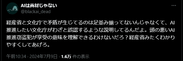 2024/7/5、経済産業省が、「コンテンツ制作のための生成AI利活用ガイドブック」なる資料を公表。これを読んだ反AIが「経済産業省が生成AIの違法性を指摘した」と誤読し、デマを流し始める。
