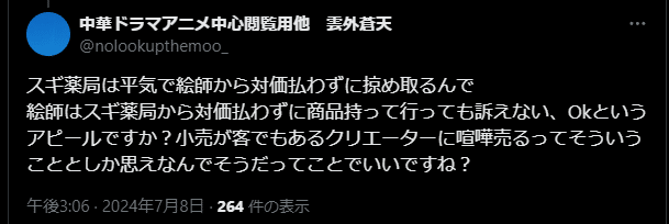 キャンセル対象がドラッグストアなので、「もうスギ薬局では買いません」といった不買系Tweetのほか、「お前のところの商品を万引きする」「されても文句は言うな」といった犯罪予告系Tweetも目立った。